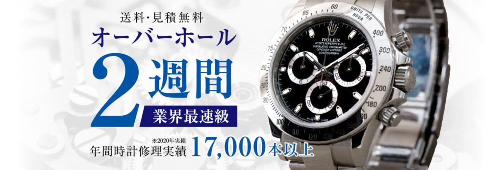 時計修理専門の会社ですので、時計修理以外に時間を費やさないためオーバーホールの納期が約3週間ぐらいと集中して対応してくれます。